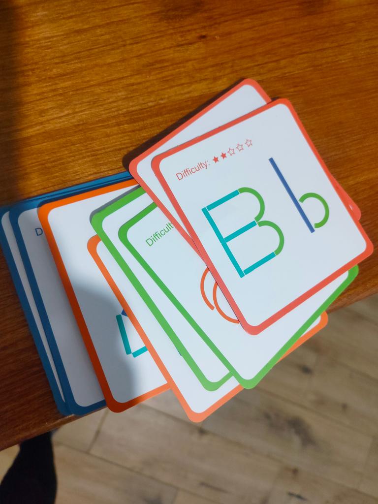 Отличный набор - 20 двусторонних карточек с образцами разной сложности, детали и мешочек для хранения.