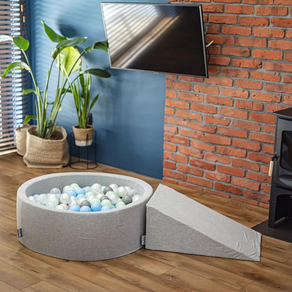 KiddyMoon Детская игровая площадка из пенопласта с круглой ямой для мячей. (200 шариков Шарики 7 см/2,75 дюйма), светло-серый:белый/серый/мятный