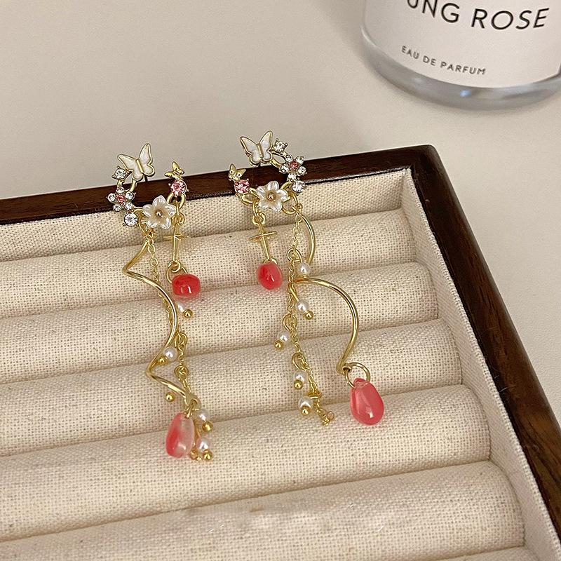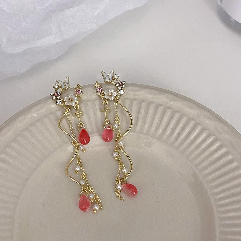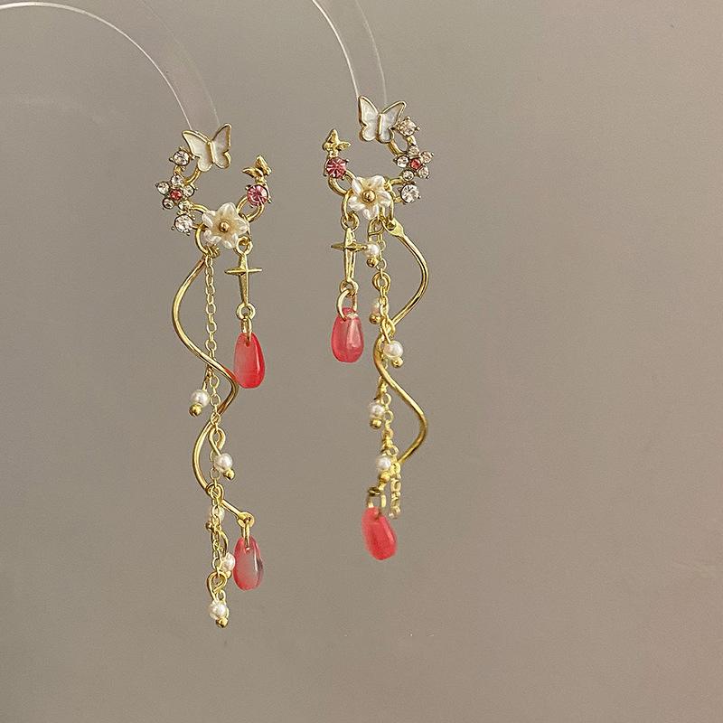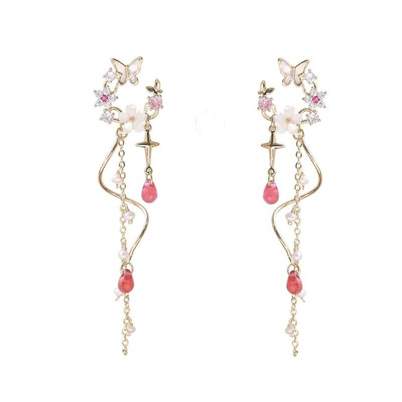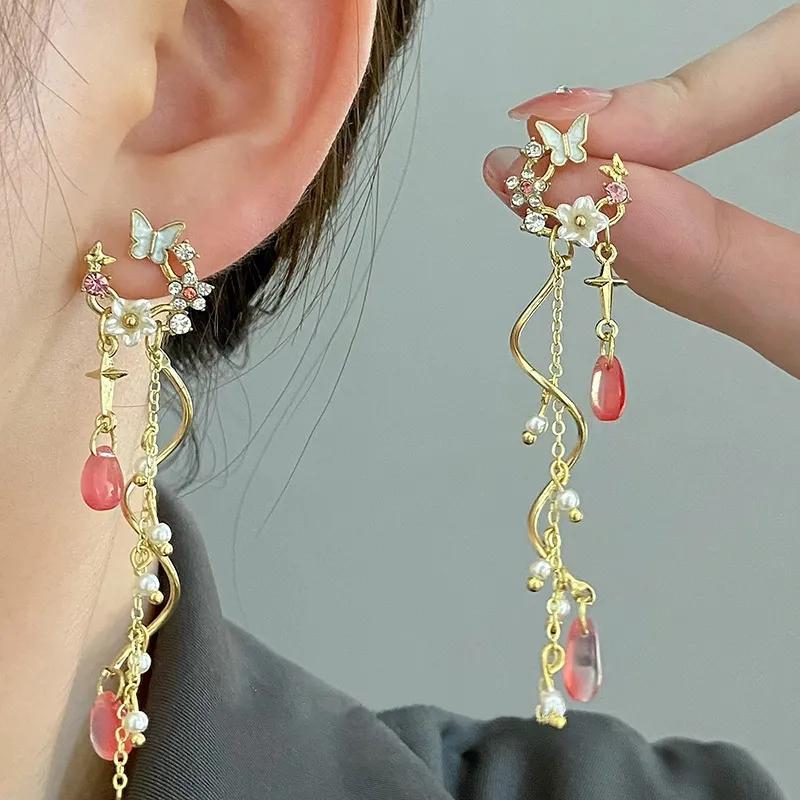 Новые серьги с кисточками и бабочками из циркона, легкие роскошные модные серьги с асимметричными цветами и кисточками для женщин