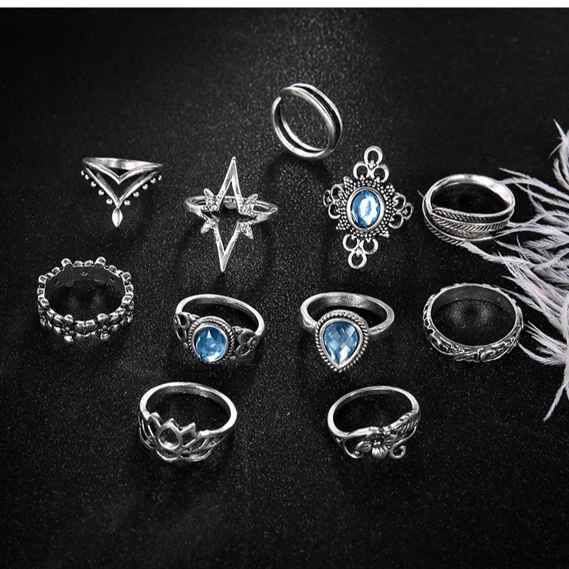 11 шт./компл., набор колец на палец в стиле ретро с сапфиром, детская корона, звезда, серебряное суставное кольцо