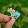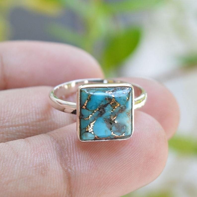 Кольцо с квадратным драгоценным камнем из синей меди и бирюзы, штабелируемое кольцо, дизайнерское кольцо ручной работы, кольцо с безелем, подарок для нее из стерлингового серебра 925 пробы