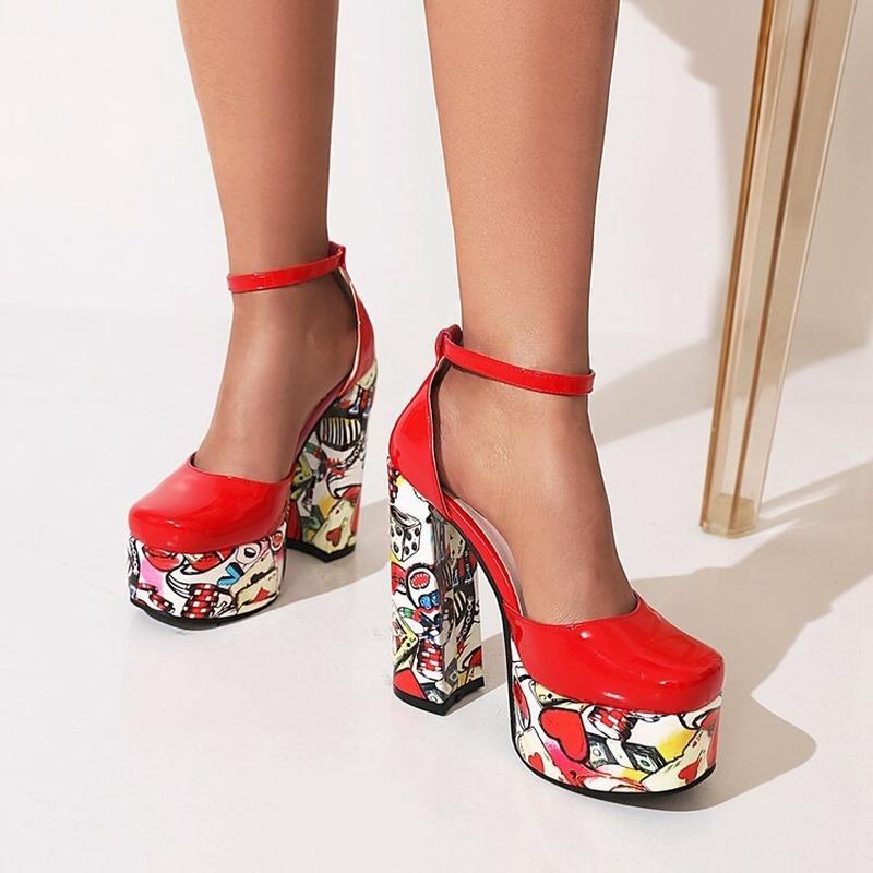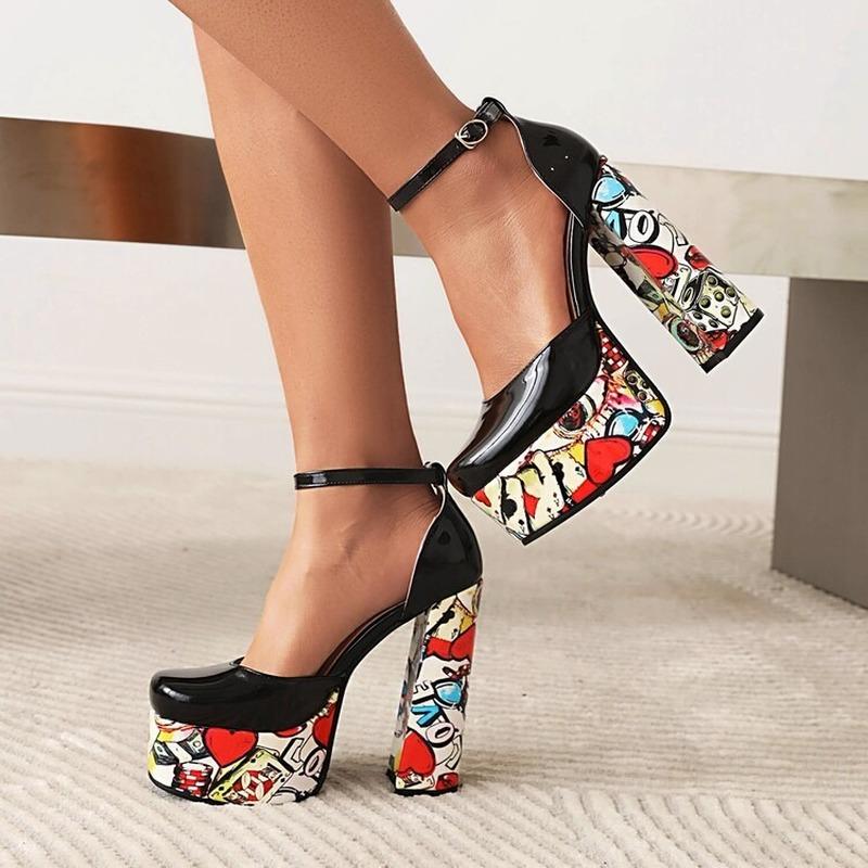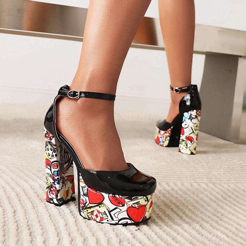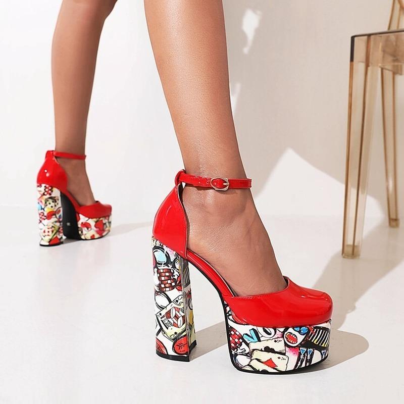Женские пикантные женские босоножки на очень высоком каблуке с пряжкой в стиле граффити, ультра-высокие водонепроницаемые туфли на платформе