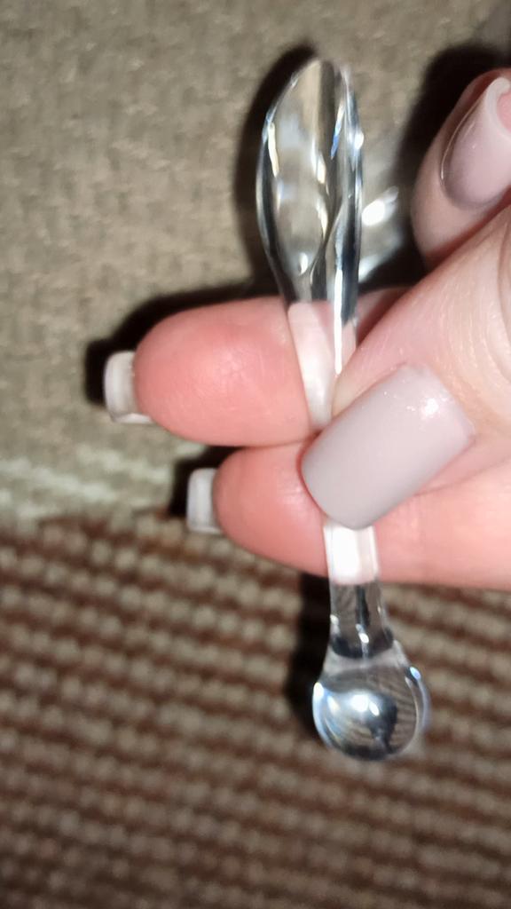 👍 упакованы были отлично, пришло 5 штук, каждая ещё и в индивидуальной упаковке ☝️не стекло, но похоже, небольшие по размеру, меньше маникюрных ножниц ✍️ пользоваться удобно, но после сразу нужно протирать или мыть ☺️ у кого ногти, даже не длинные, то прям рекомендую, чтобы ручонки не совать в банку с кремом или под глазами крем размазывать тоже удобно