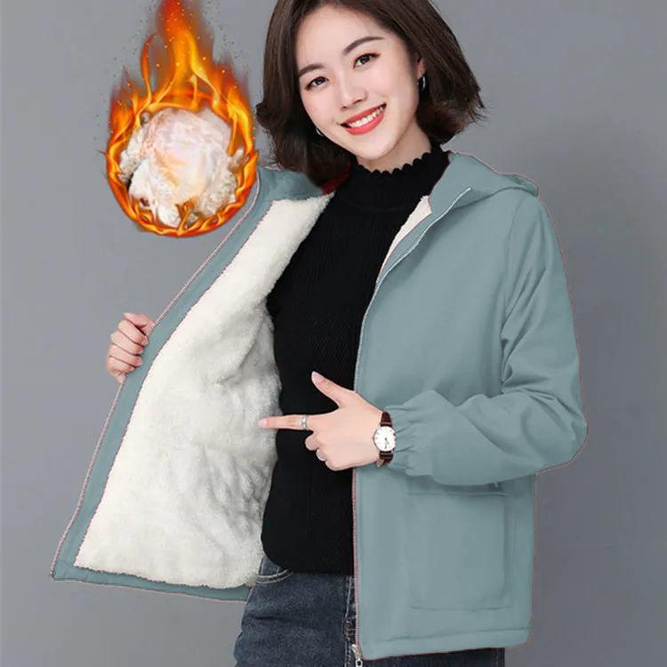 Женская флисовая куртка осень-зима короткая толстая теплая куртка на молнии свободное женское пальто с капюшоном размера плюс