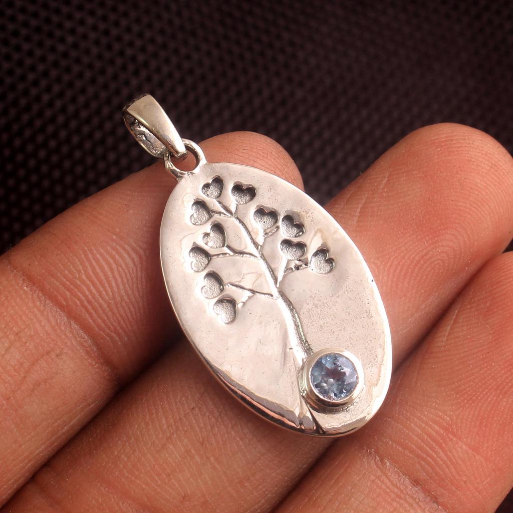 Синий топаз Перидот Аметист Гранат Серебряный подвесной кулон из стерлингового серебра 925 пробы Ювелирные изделия «Древо жизни»