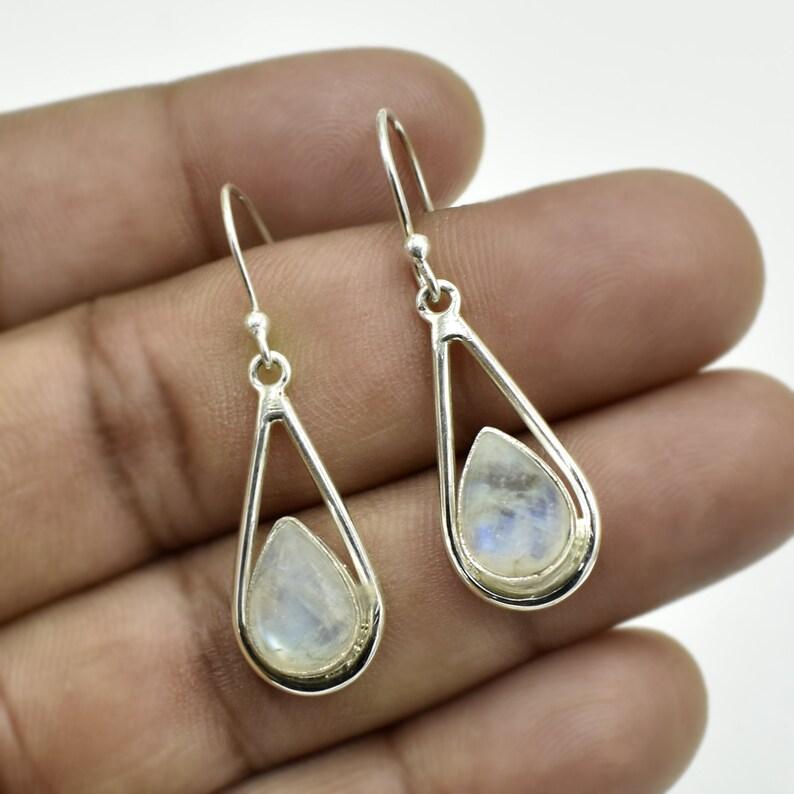 МАТЕРИАЛ - Серебро 925 пробы, драгоценный камень | Драгоценный камень лунный камень КАБОШОН ФОРМА КАМНЯ - Груша кабошон | ВЕС СЕРЬГИ - 5-7 грамм | ЦВЕТ КАМНЯ - Белый