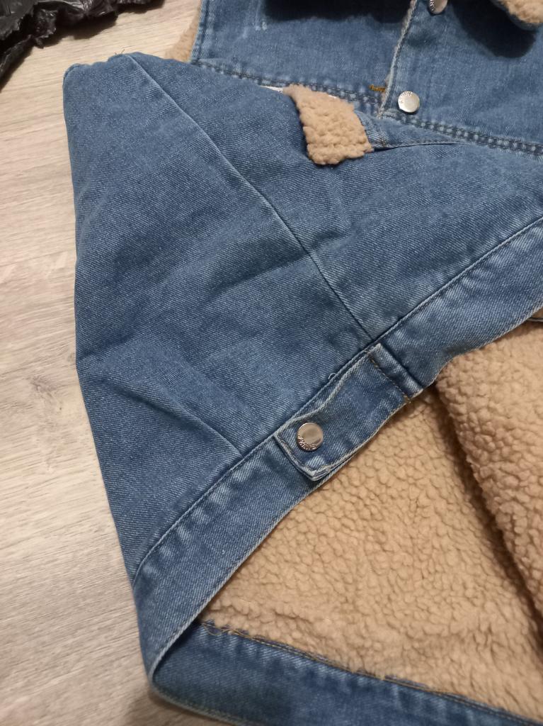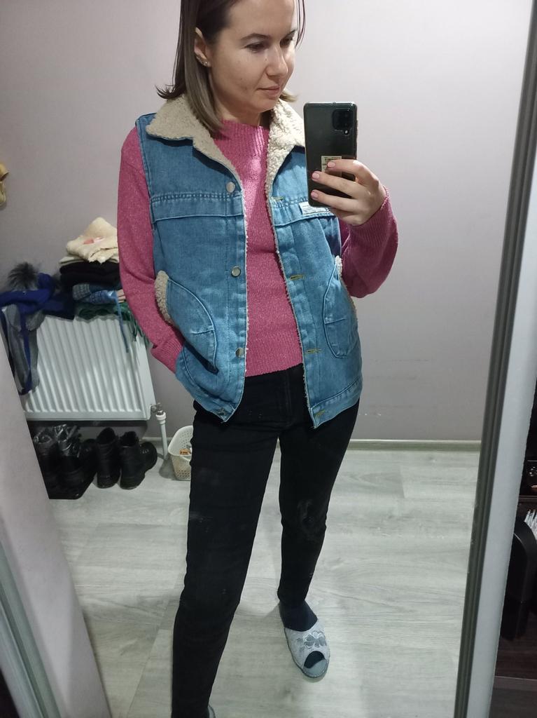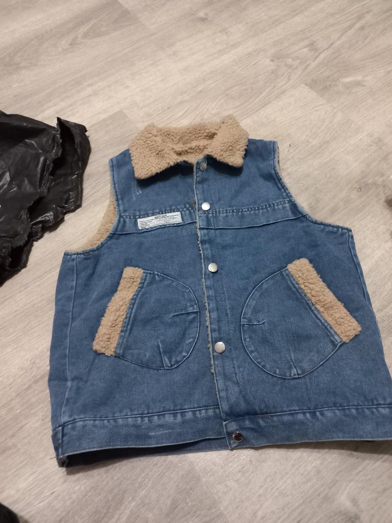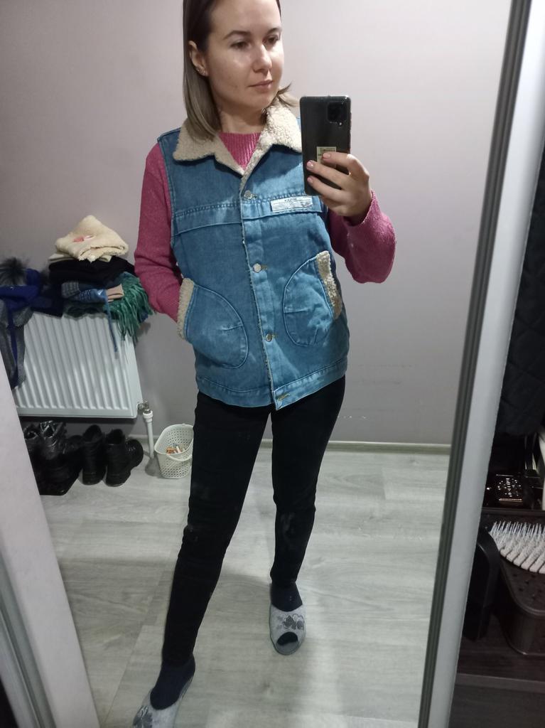 Хорошее качество ткани, деним, искусственный мех. Хороший пошив.Теплый жилет.