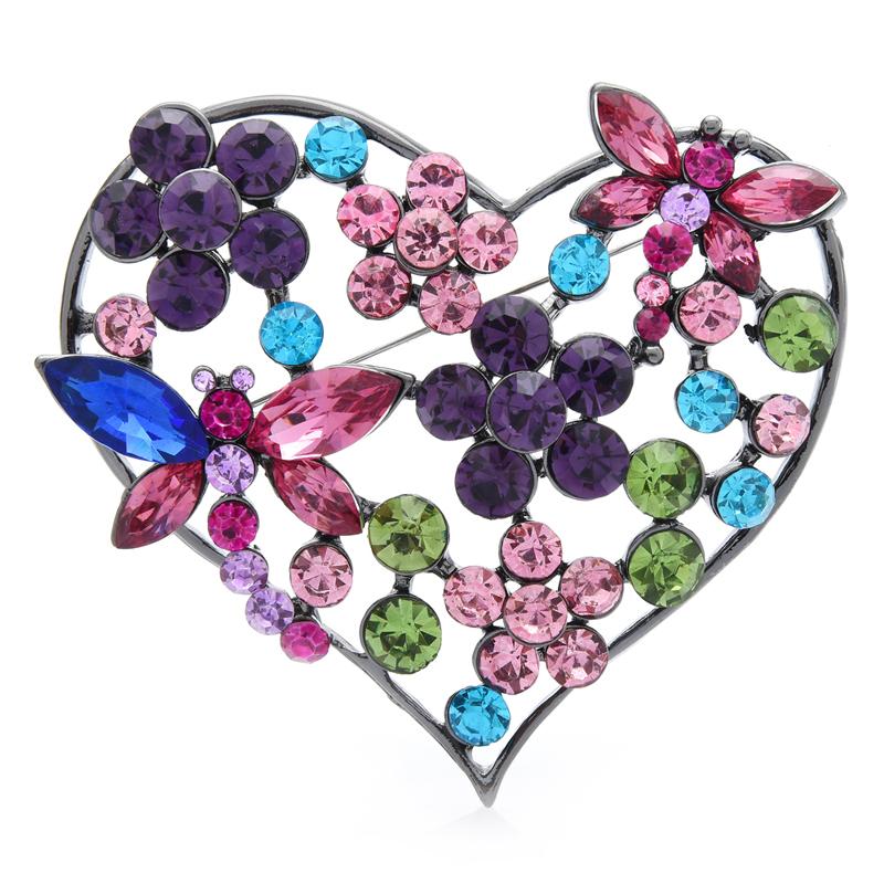 Wuli&baby, большие стразы, цветок, брошь в форме сердца для женщин, женские разноцветные сверкающие броши для вечеринки в стиле «любовь», повседневная брошь на булавке, подарки