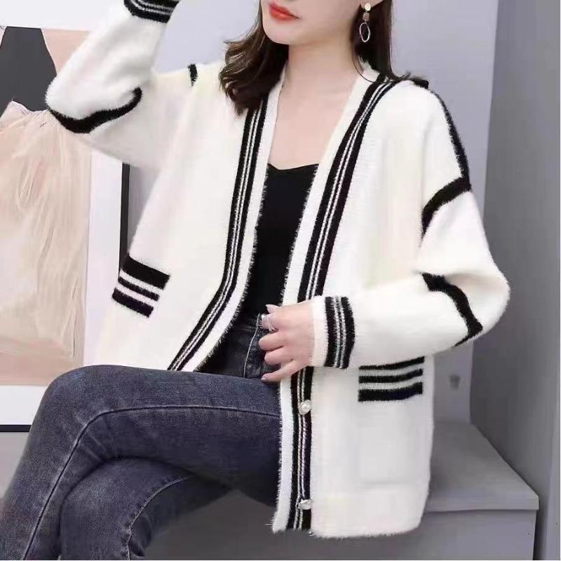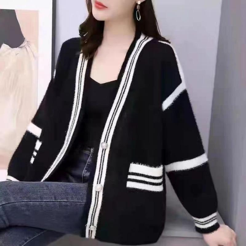 Кардиган из норки, плюша, пальто в иностранном стиле, свитер для женщин, осенне-зимний свитер с длинными рукавами и v-образным вырезом, кардиган, женские топы