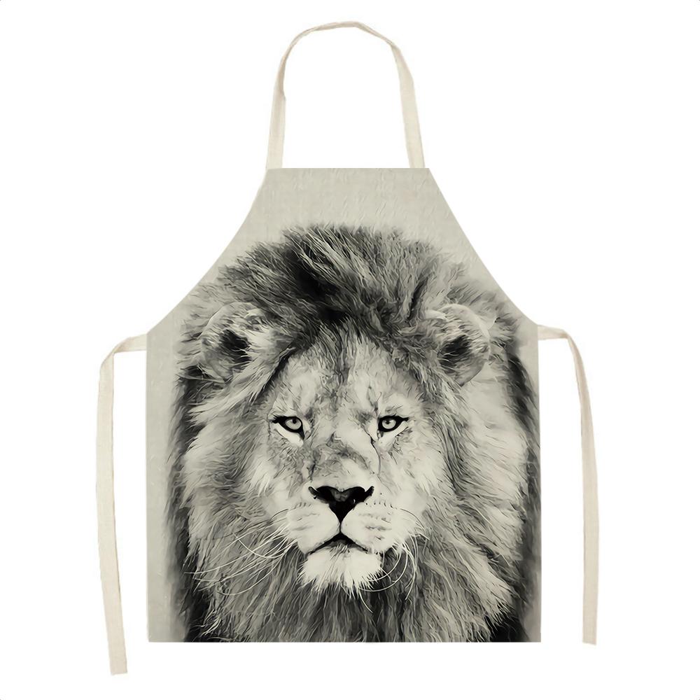 Женский кухонный фартук с принтом льва и лошади, детский льняной фартук-нагрудник для уборки дома, водонепроницаемые аксессуары для выпечки и выпечки