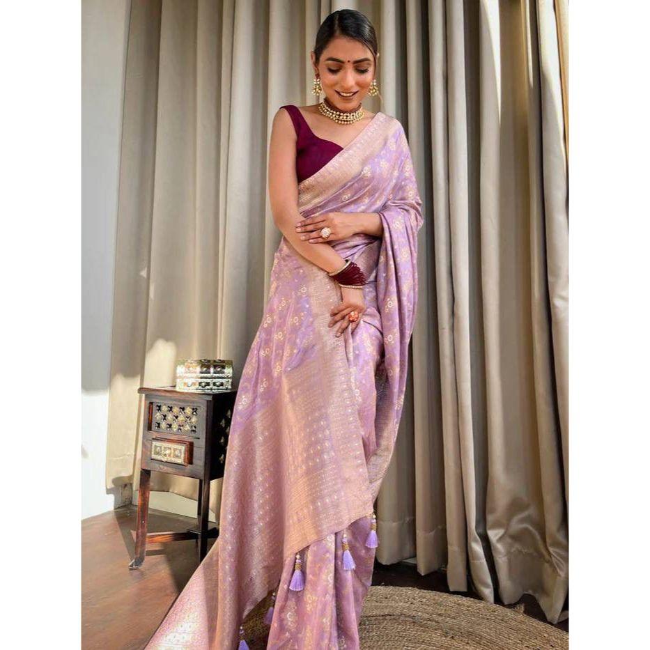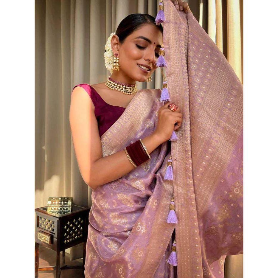 Это красивое сари элегантно украшено великолепным жаккардовым плетением, которое придает образу идеальный вид.
