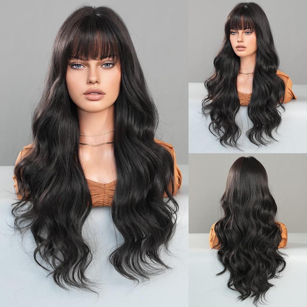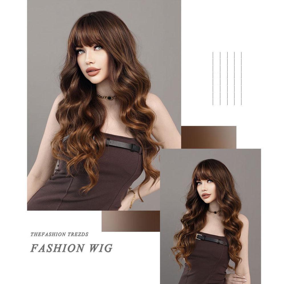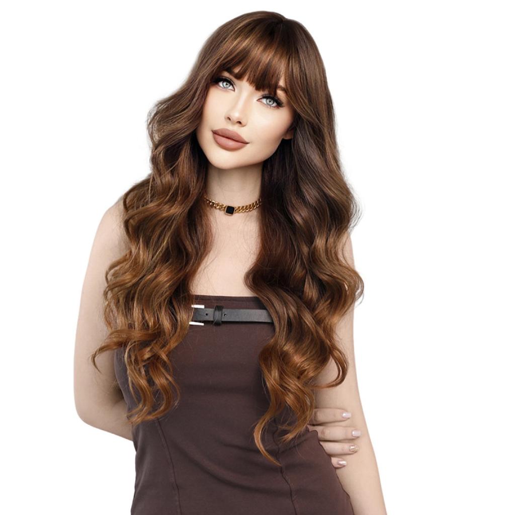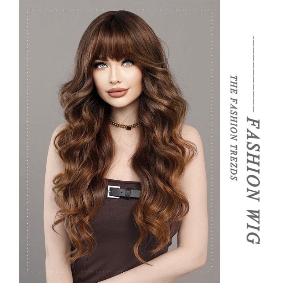 Женский имитационный парик, 67 см, темно-коричневый парик, длинный вьющийся парик, полный головной убор, сетка для волос в виде розы, головной убор, украшение для красоты, парик