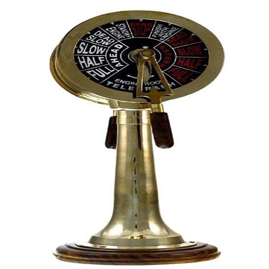 Латунный корабельный телеграф: Латунный корабельный телеграф изготовлен мастерами-ремесленниками.. Телеграф управления двигателем — это устройство связи, используемое на корабле. (или подводная лодка) чтобы позволить капитану дать указание инженерам в машинном отделении привести судно в движение на определенной скорости. Когда вы поворачиваете ручку телеграфа, он движется. Деревянный фундамент позволяет телеграфу стоять вертикально.