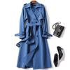 Женская ветровка, длинная весенне-осенняя новая однотонная темпераментная двубортная японская ветровка с длинными рукавами и лацканами