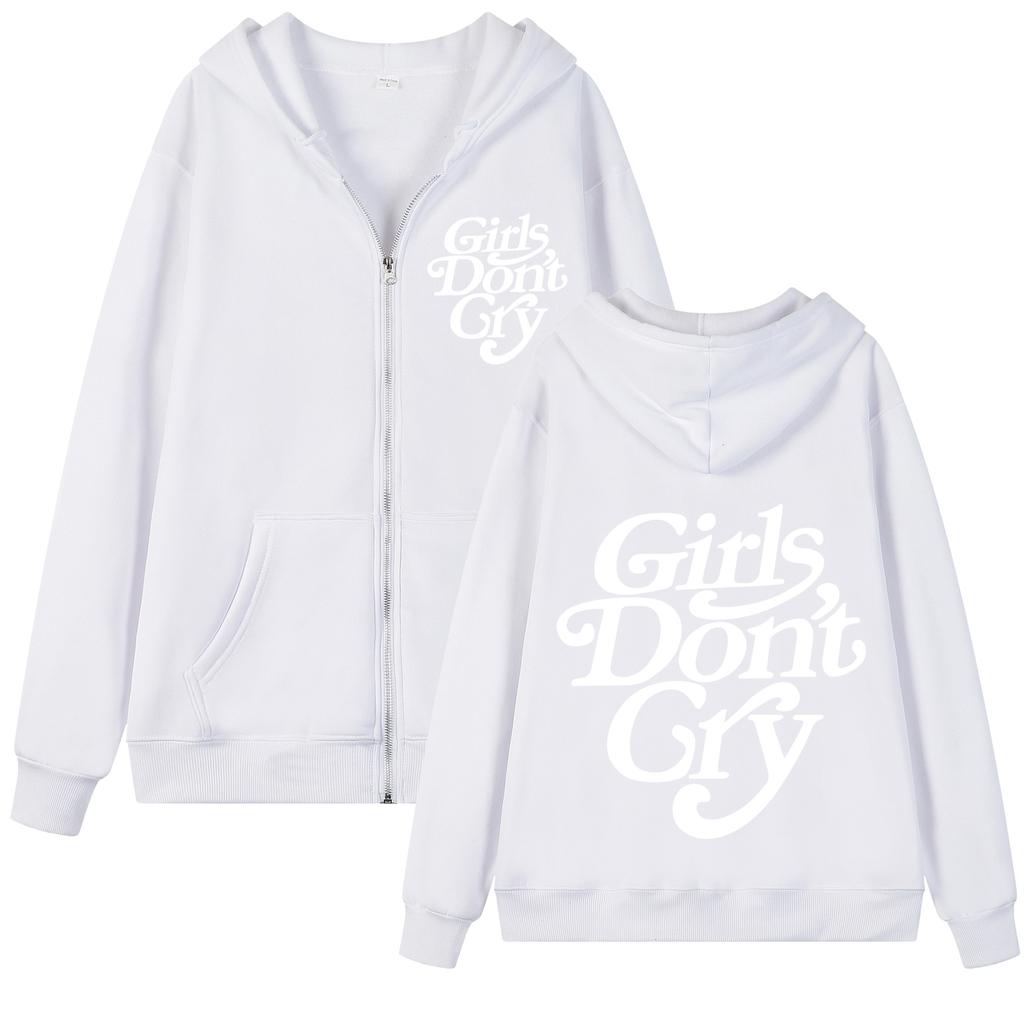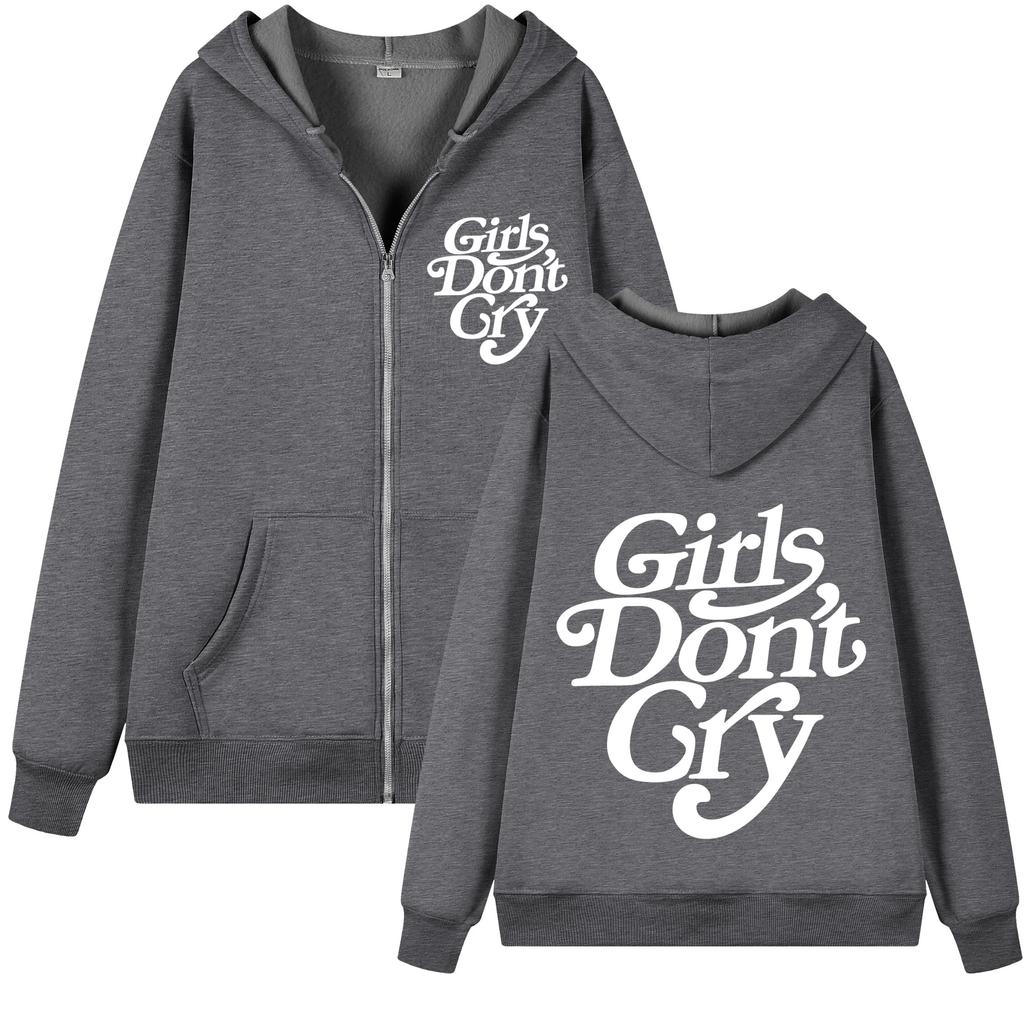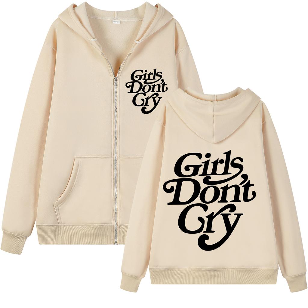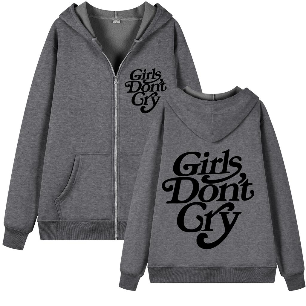 Девочки не плачут, новый стиль, унисекс и женская молния, черно-белые надписи с принтом, повседневный унисекс и женский уличный свитер на молнии