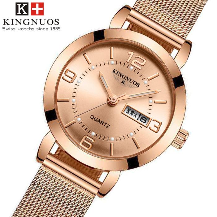 KINGNUOS кварцевые часы немеханические женские часы светящиеся водонепроницаемые двойной календарь женские наручные часы со стальным ремешком — купить товар онлайн с бесплатной доставкой по всему миру!