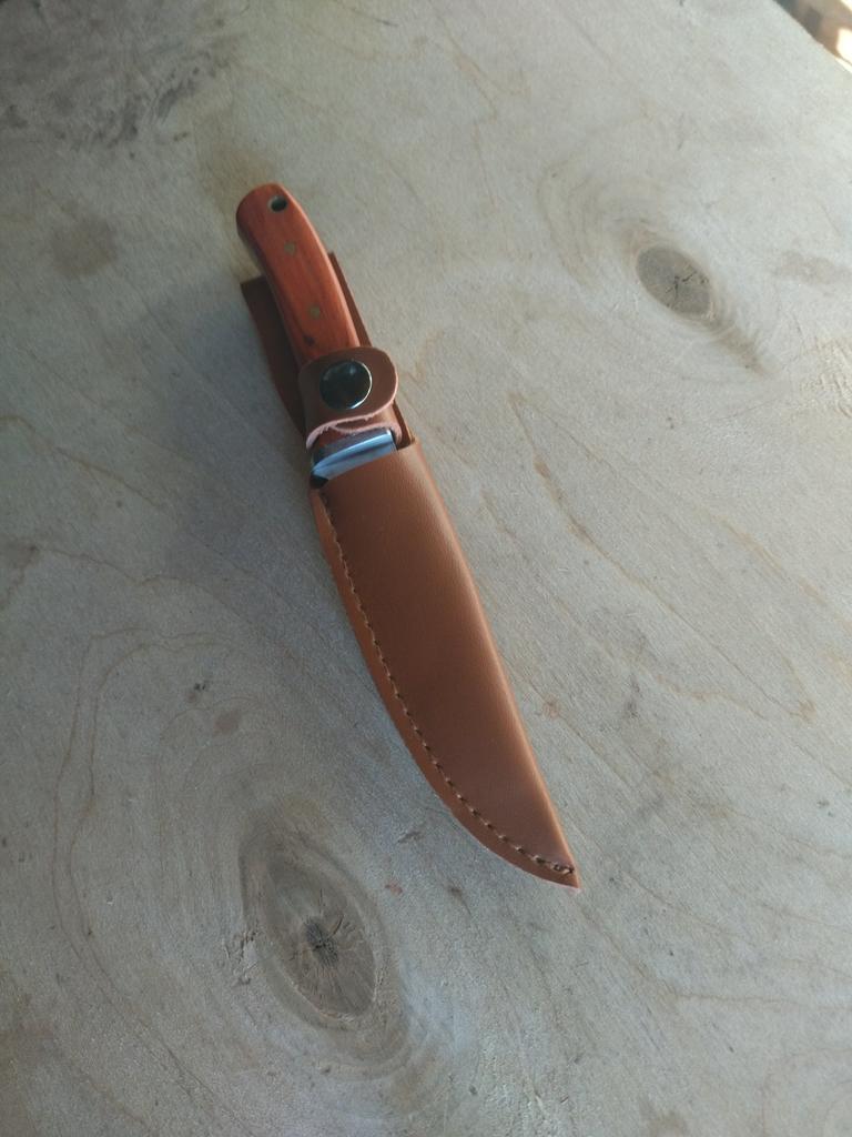 Наконец пришёл мой заказ. Нож классный, очень острый. Не успев по пользоваться уже порезалась, сама не поняла как. Чехол только покарябаный. На фото видно.