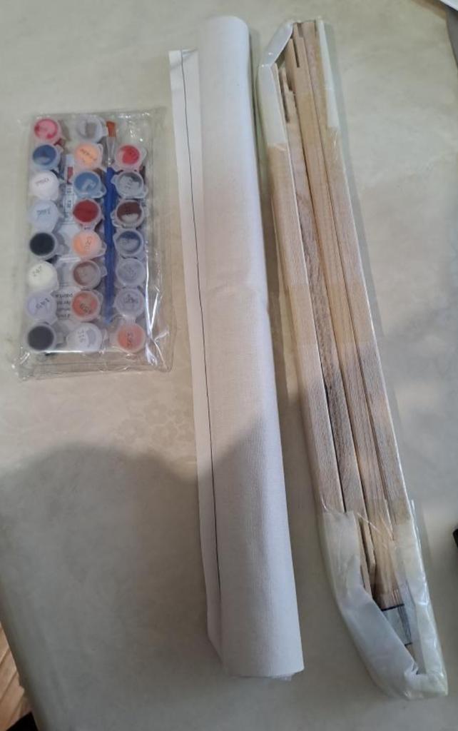 Получила посылку( выиграла за 1грн ) , шла она долго , иногда кажется что шла она сама , перебирая кисточками и шурша холстом. Но это так лирика. Набор хороший для начинающих юных художников , и для людей , кто просто хочется отдохнуть. В наборе сборный подрамник из разряда собери сам , кнопки для холста(хотя лучше строительный степлер у кого есть) мини краски и кисти . Все упаковано было хорошо. За это отдельное спасибо продавцу. В общем товар рекомендую.