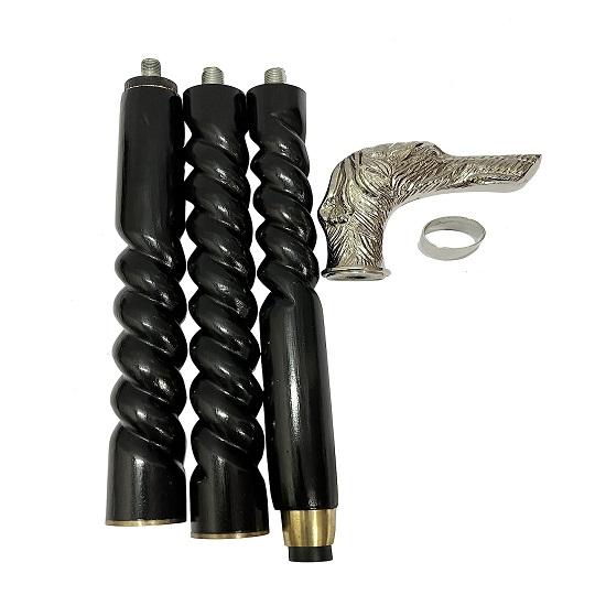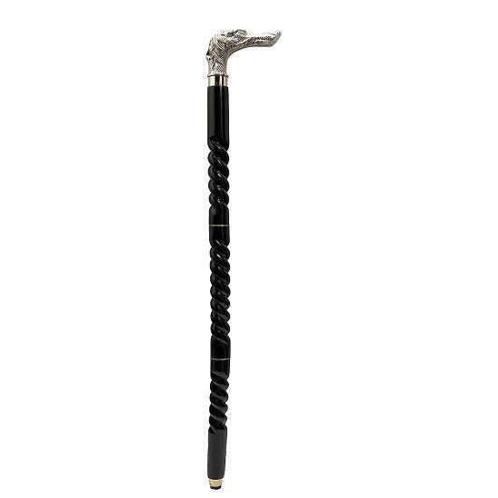 1. Потрясающая ручка в виде головы собаки: В основе очарования этой трости лежит латунная ручка в виде собачьей головы замысловатого дизайна.. Этот благородный и жизнерадостный четвероногий компаньон придаст каждому вашему шагу нотку царственной изысканности.