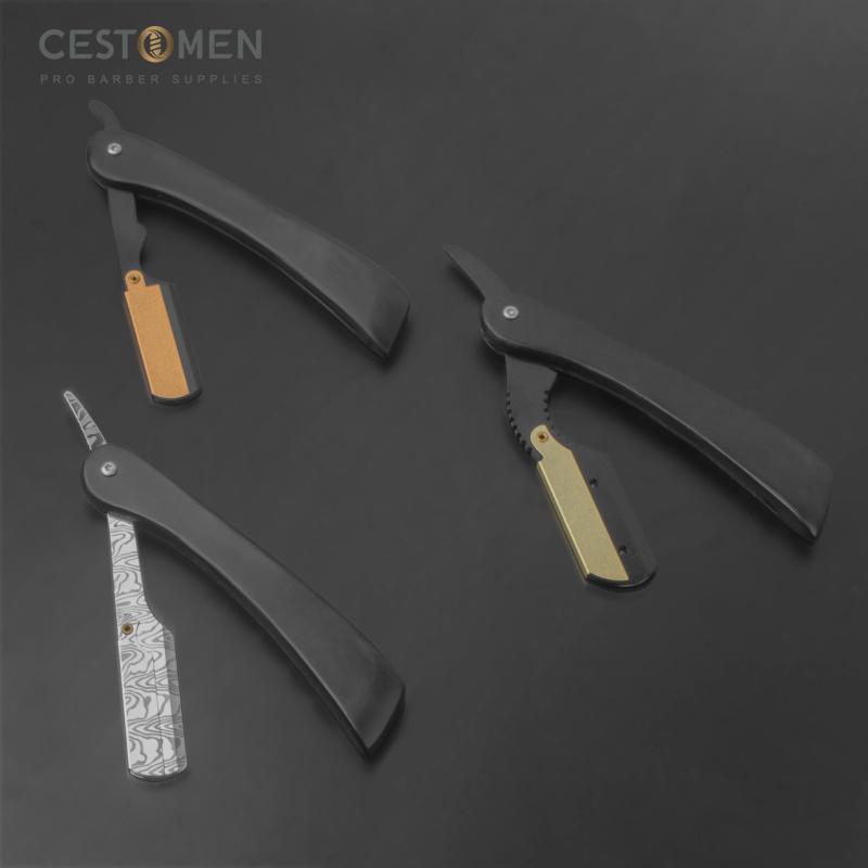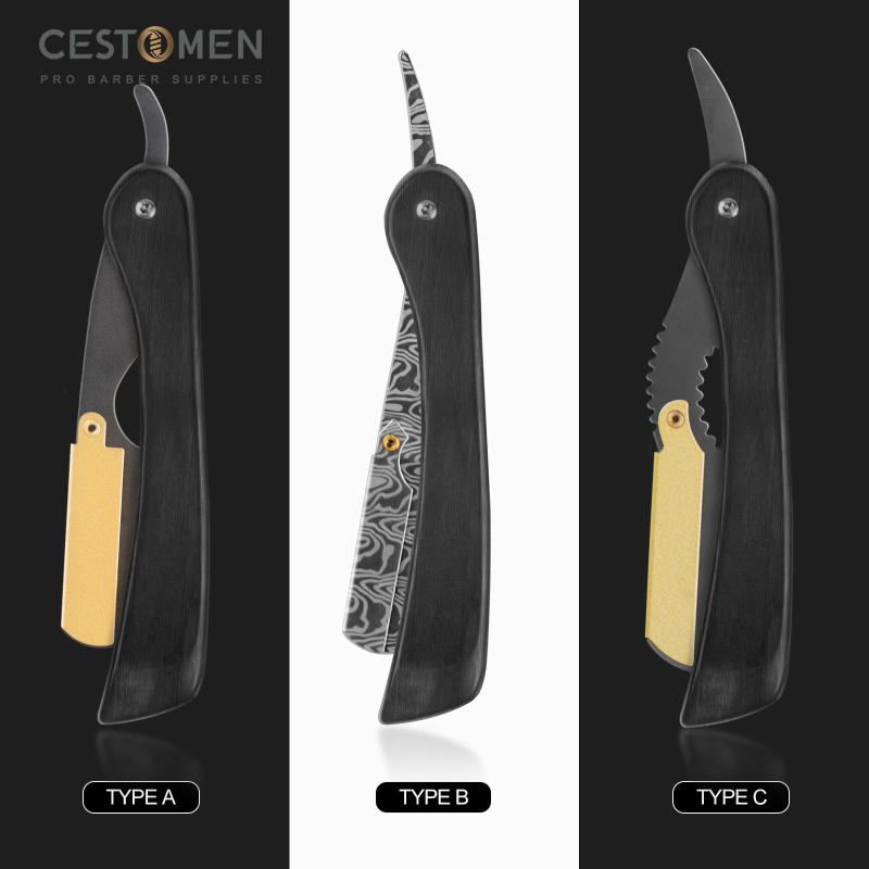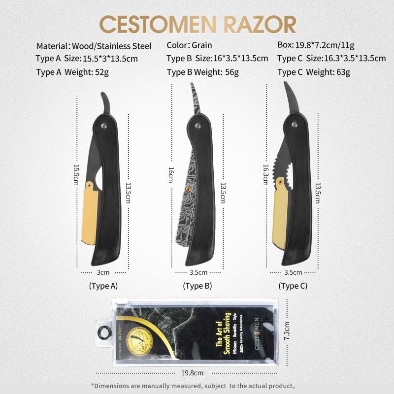 CESTOMEN Серебристая бритва из нержавеющей стали с одной кромкой, черная деревянная ручка, классическая прямая парикмахерская бритва для мужчин для бритья