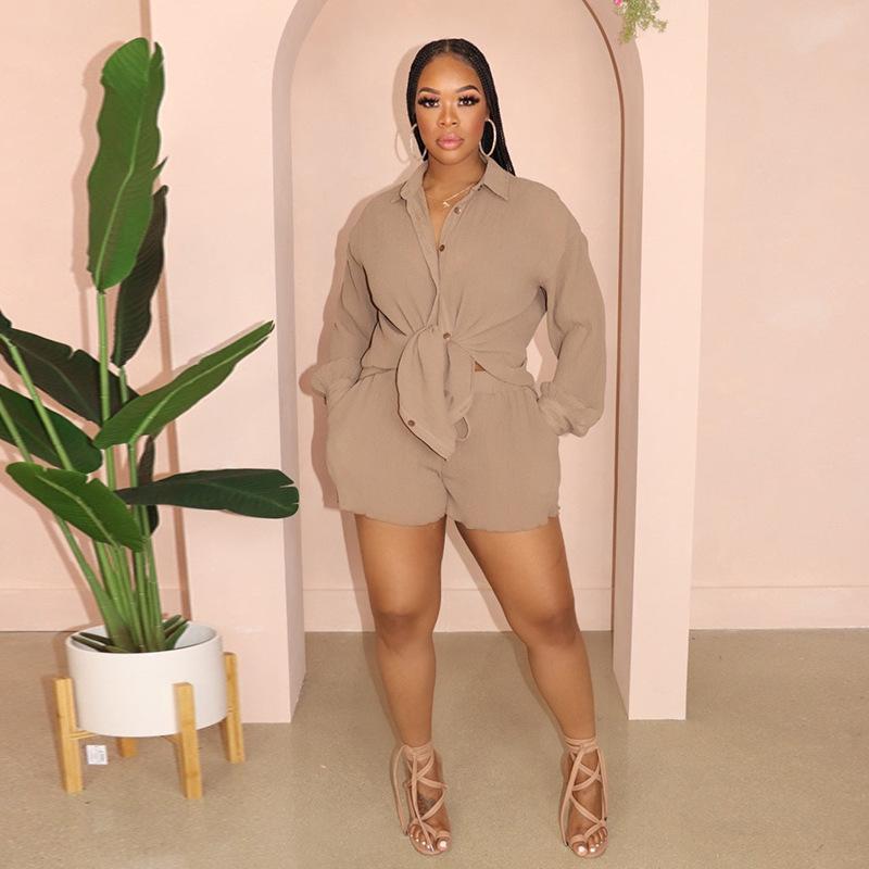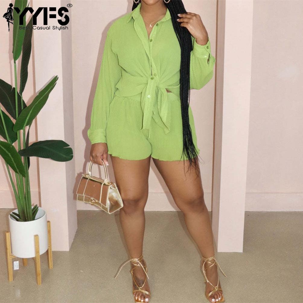 YYFS Женские модные повседневные однотонные спортивные шорты с длинными рукавами и принтом поло, свободные спортивные шорты больших размеров, костюмы