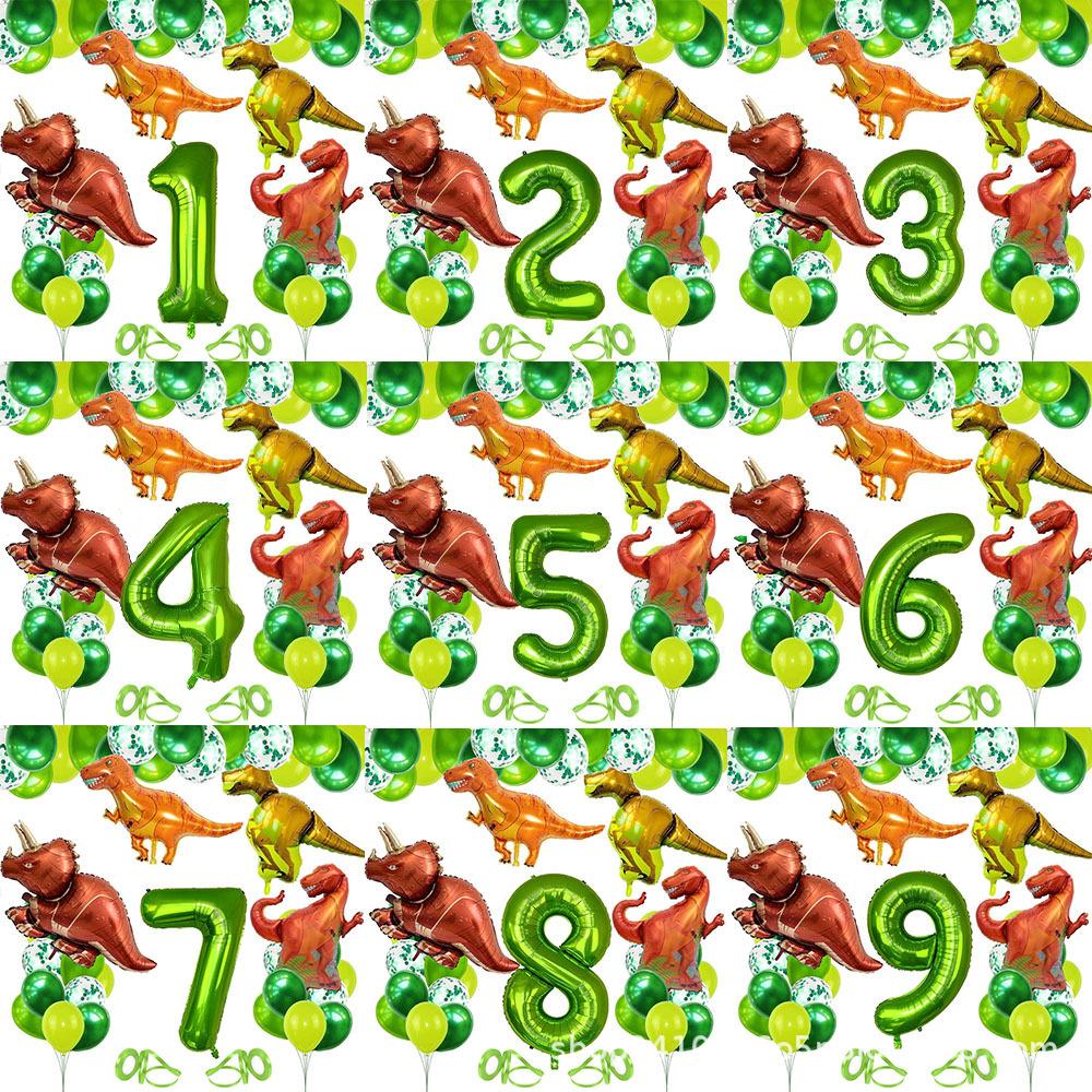 Динозавр 1-9 лет день рождения воздушный шар фон украшения номер набор день рождения номер воздушный шар набор зеленый