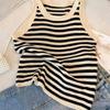 Свитер-жилет женский весенне-летний топ на бретельках с внутренним слоем и дизайном на ремешке, полосатый топ с жилетом без рукавов, женский пуловер