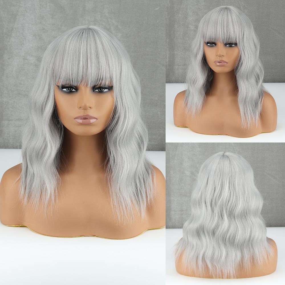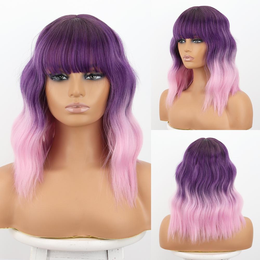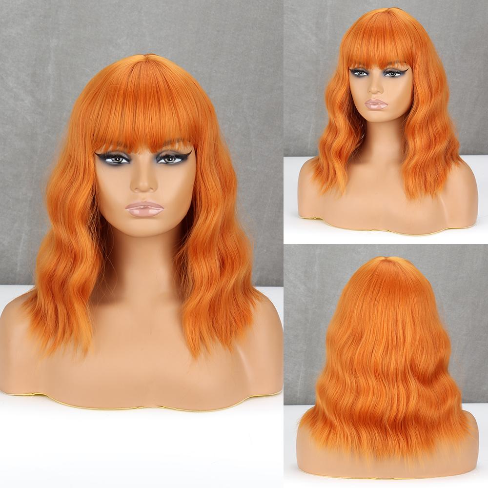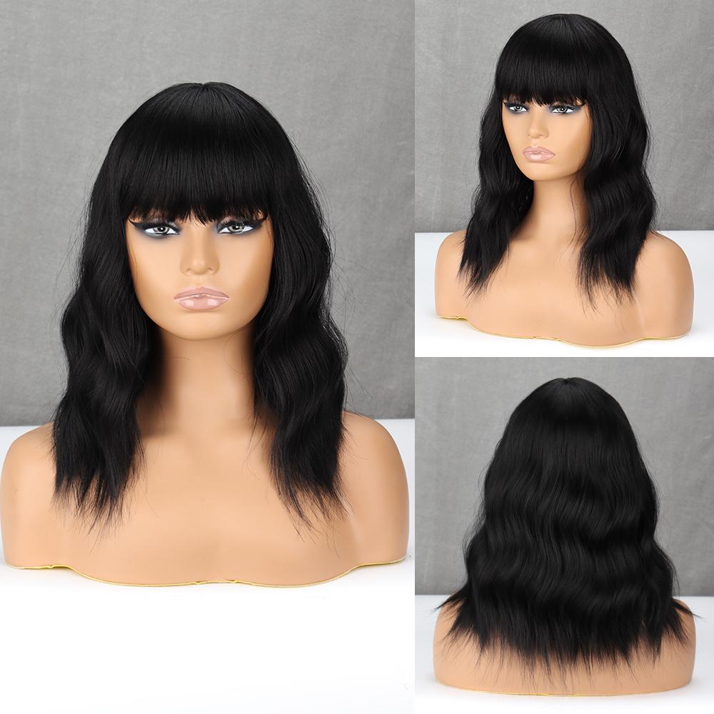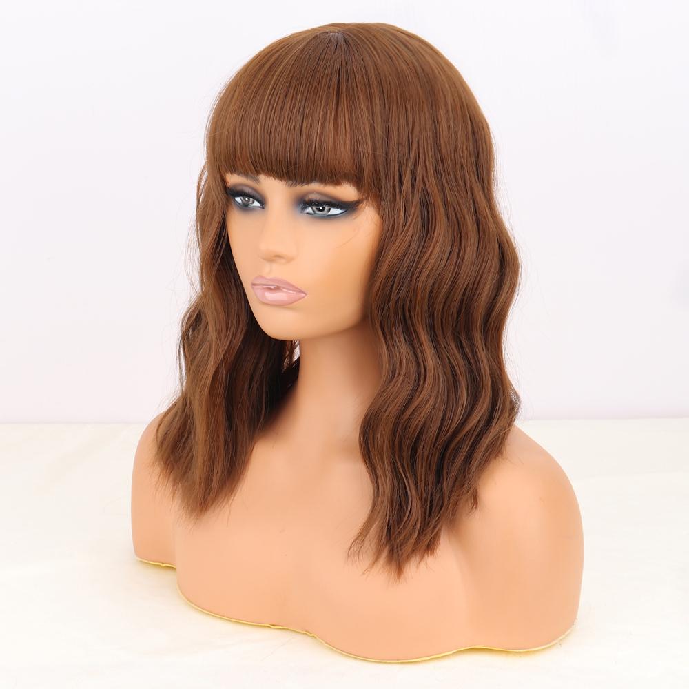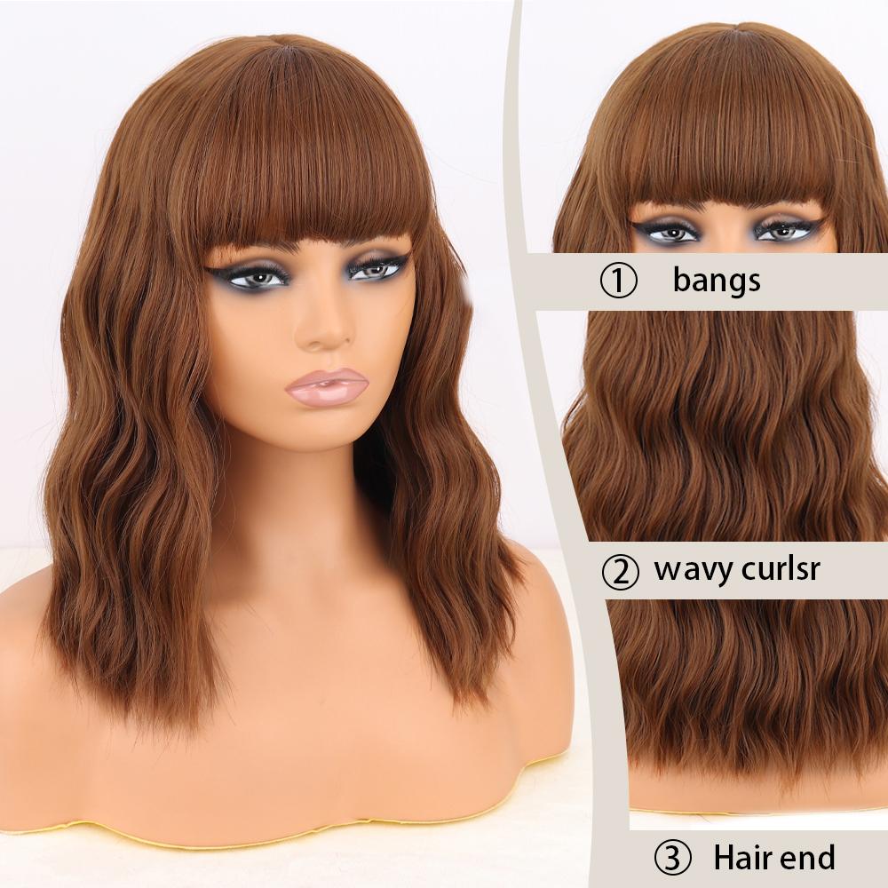 MISS WIG Коричневые волнистые парики Боба для женщин, синтетические парики с париками из натуральных волос с челкой, термостойкие