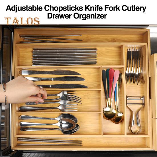 Бамбуковый регулируемый поднос для столовых приборов, аккуратный элегантный органайзер для кухонного ящика, аксессуары для дома
