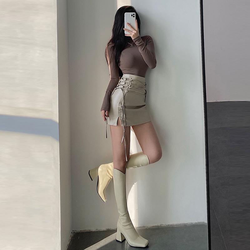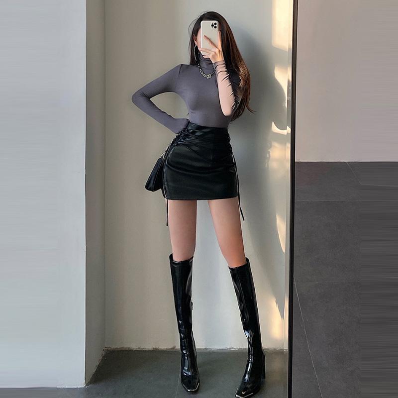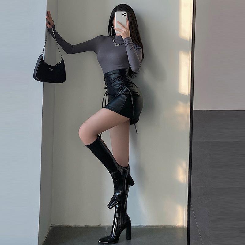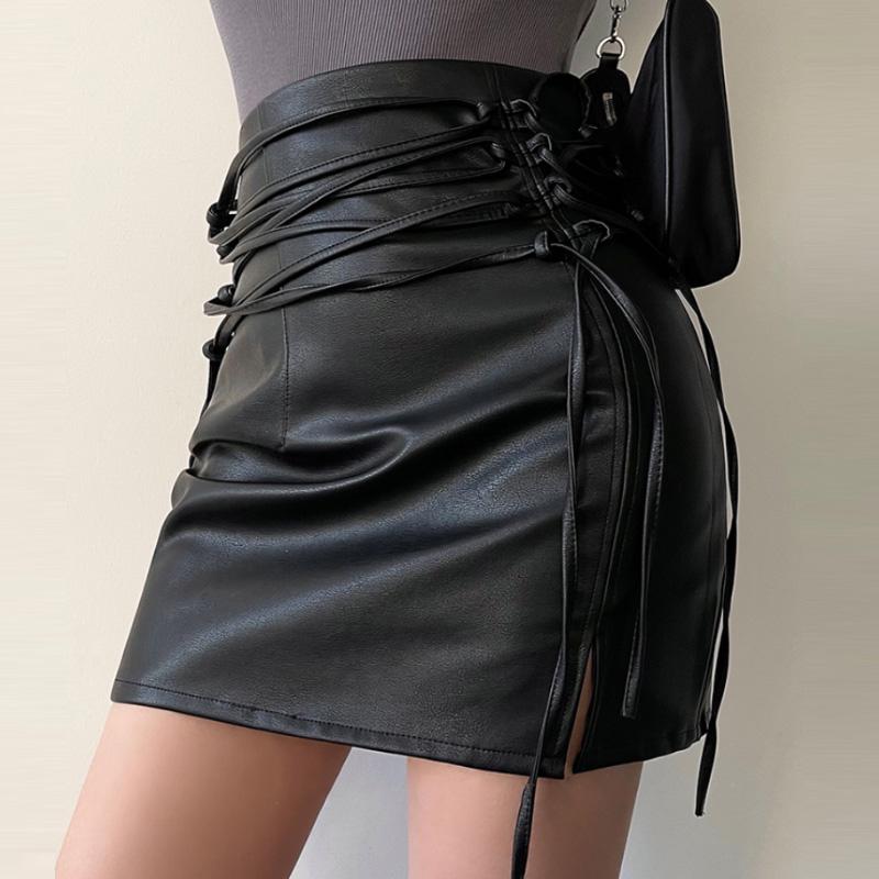 Сексуальные юбки из искусственной кожи для женщин, бандажные трапециевидные черные юбки-карандаши с высокой талией, модная женская одежда Y2k, осень-зима