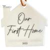 Кулон «Первое Рождество в нашем доме» Двусторонний принт Круглая форма сердца Гладкие висячие благословения Декоративный подарок на новоселье Украшение окна