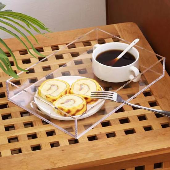 Прочный и нескользящий акриловый поднос со встроенной ручкой для удобства переноски.