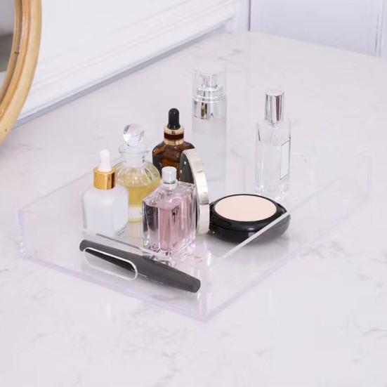 Высокий прозрачный акриловый поднос, который можно использовать как декоративный аксессуар или как витрину для украшений, свечей и мелких предметов.