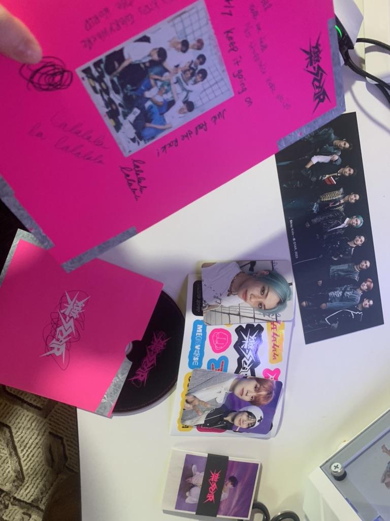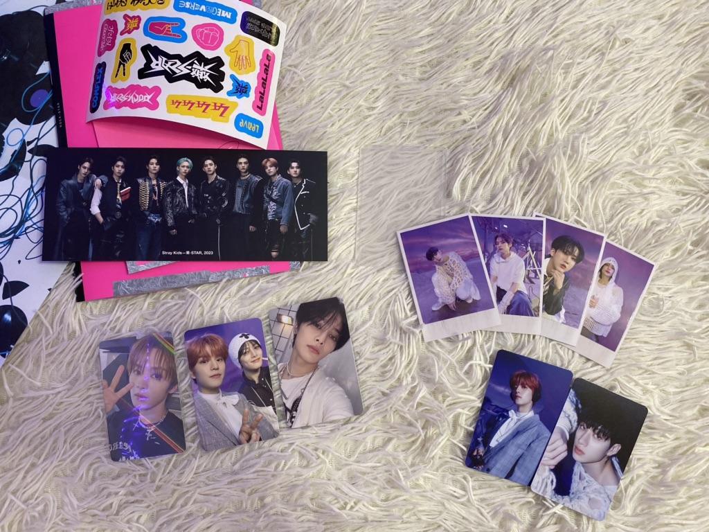 доставка это, конечно, ужас.... хотя, зная от какого продавца заказывала, это было ожидаемо. в общем, 4 ноября купила, 24 ноября отправили, 30 января посылка пришла. альбом заставил меня понервничать, ибо смотреть за тем, как всем все пришло, а твой заказ непонятно где (отслеживание нормально не работало, но спасибо, что оно хотя-бы было), было не сильно приятно. перейдём к самому альбому! пришёл в нормальной упаковке, поэтому даже углы целы, как и наполнение. фотобук просто прекрасен, пока что он один из моих фаворитов😁 итак, самое вкусное: выпали полики с макнэ-лайном, юнитка с хенсонами и дабл-карта с феликсом, а в предзе выпал джисон! увы, сфотографировать его забыла, мб, прикреплю потом...