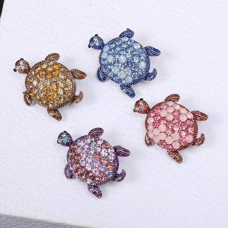 Броши-черепахи со стразами для женщин, модные синие океанские металлические броши в виде животных, очаровательные булавки, роскошный дизайн, ювелирные изделия, свадебные подарки