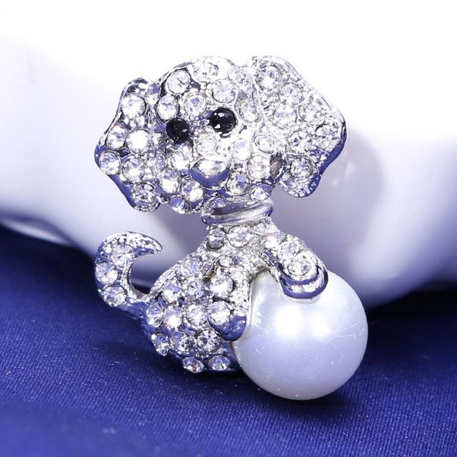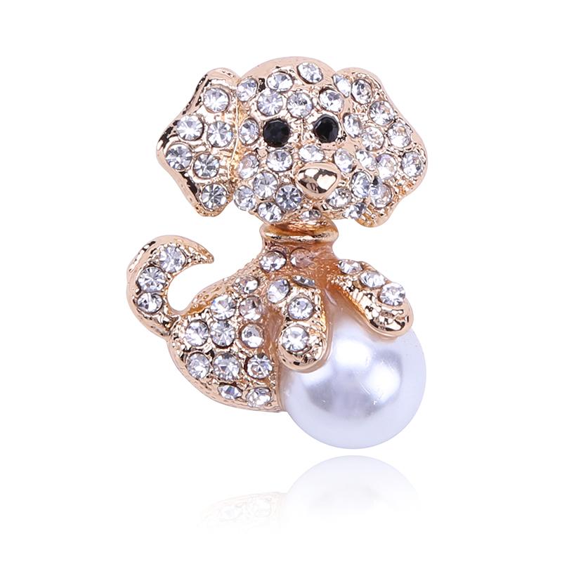 Модная брошь со стразами, милая собака, обнимающая жемчужный шар, женские шапки, шарф, костюм, брошь, одежда, пряжки, булавки для женщин