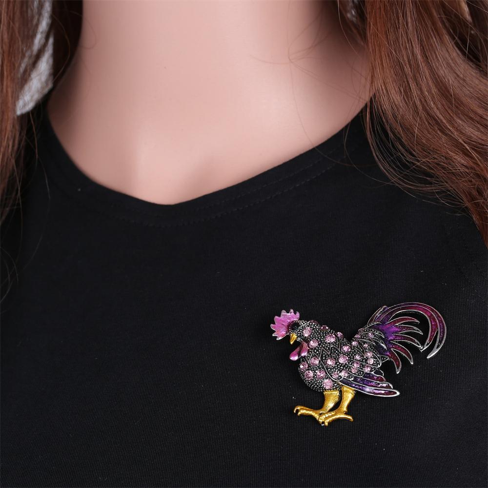 Винтажная эмалированная брошь в виде петуха, булавки для мужчин, унисекс, модная инкрустация стразами, металлические броши с животными, роскошный дизайн, ювелирные изделия, подарки