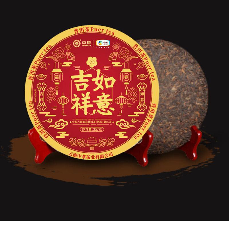 Китайский чай Чай Пуэр 2021 Чай Пуэр удачи Спелый приготовленный чайный пирог 357г COFCO