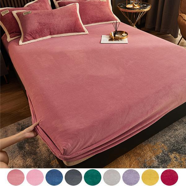2024 зимняя теплая однотонная фланелевая эластичная простыня на наматраснике, супермягкая и уютная двуспальная кровать размера King Size, простыни