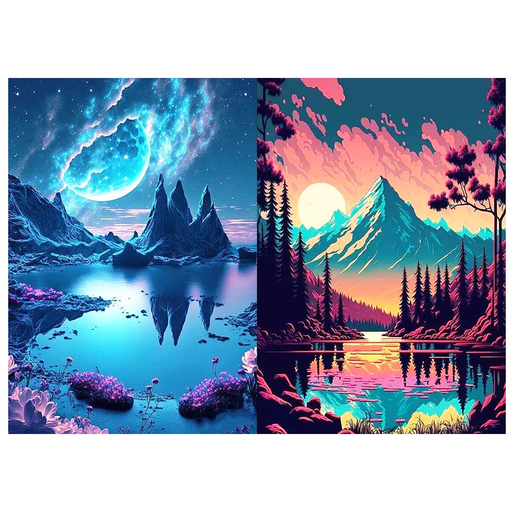 HuaCan Алмазная картина DIY Kit Ландшафтная картина Полная круглая дрель Мозаика Ночной вид Картины Вышивка Домашний декор