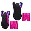 Детский лоскутный купальник без рукавов для девочек с металлизированными шортами с высокой талией, комплекты для танцев, катания на коньках, гимнастический комбинезон