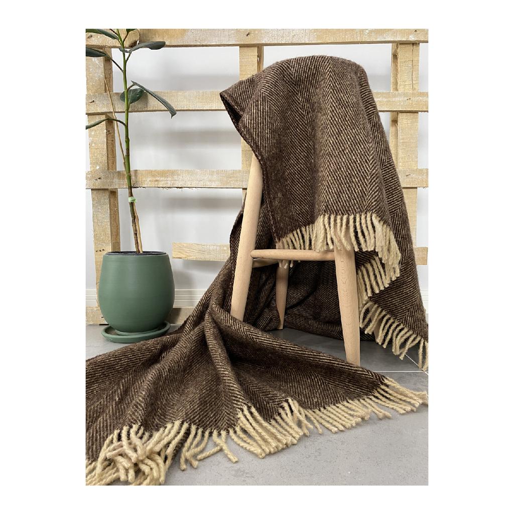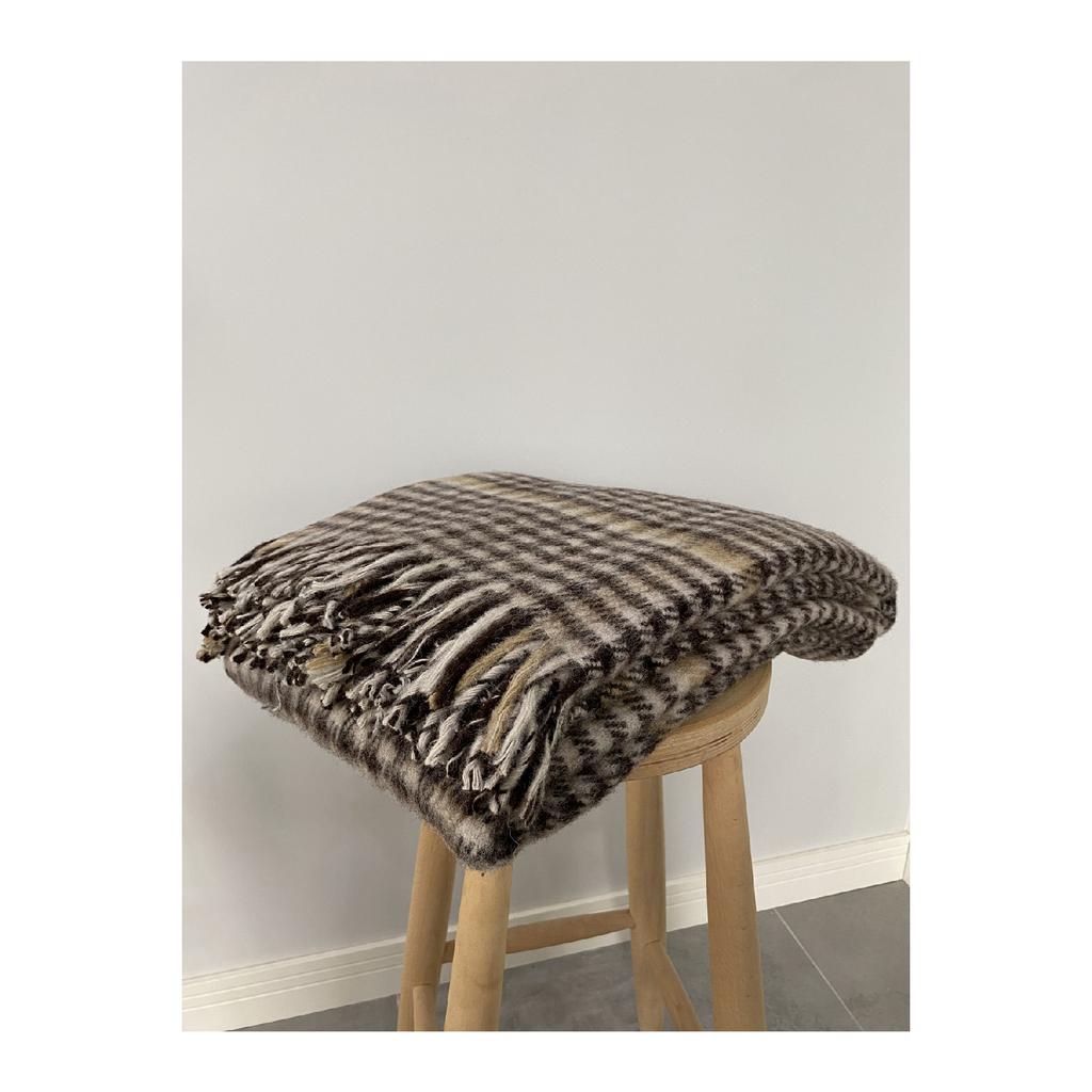 Плед для телевизора из натуральной 100% овечьей шерсти — черный в клетку
