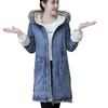 (SU)Модные женские джинсы Топ утепленная джинсовая блузка с капюшоном с длинным рукавом свободное пальто