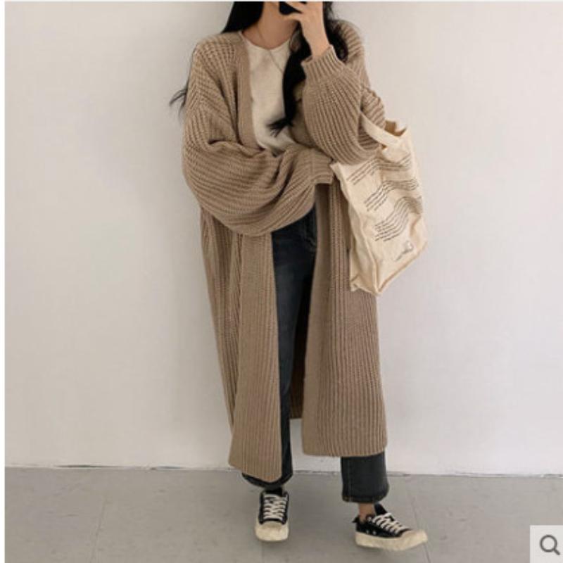 Модная женская куртка, длинный кардиган, однотонное однотонное вязаное пальто с рукавами-фонариками, теплое пальто на выход — купить товар онлайн с бесплатной доставкой по всему миру!