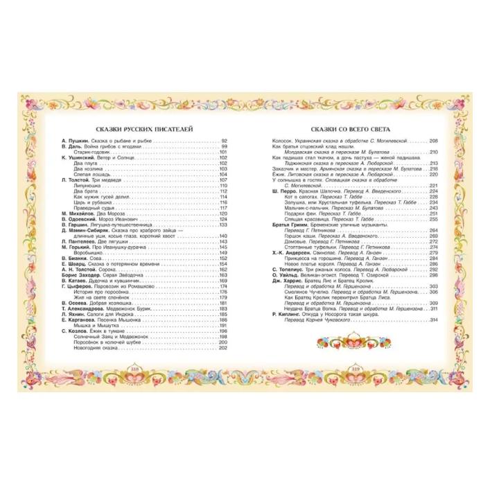 В сборник вошло 100 лучших сказок. Это и русские народные сказки, и украинские, армянские, словацкие, таджикские, и сказки русских писателей: К. S. Пушкина Л. N. Толстого В.. M. Гаршина В.. F. Одоевского Л. Пантелеева, Бориса Заходера, В. P. Катаева Г.. M. Цыферова С. грамм. Козлова, и, конечно, сказки знаменитых зарубежных сказочников: Шарля Перро, братья Гримм, Х.-К.. Андерсена. Здесь собраны сказки на любой вкус и для малышей, и для тех, кто постарше, и нет сомнений, что эта книга будет радовать вас долгие годы. Красочные сказки с иллюстрациями для маленькой помочь ребенку лучше представить сюжеты истории и приключений героев, развить фантазию и воображение. Детские сказки на ночь также подготовить маленькую ко сну и настроить на приятные сновидения. Совместное чтение и обсуждение сюжетов и приключений героев сказки поможет мальчикам и девочкам пополнить словарные запасы и развить речь, а красивые картинки увлекут внимание ребенка.