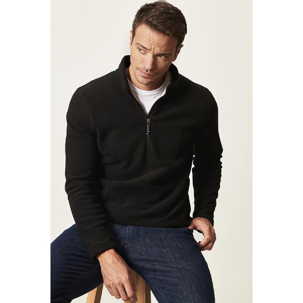 Мужская черная флисовая толстовка с защитой от скатывания и не скатывается, стандартная посадка с воротником Бато, морозостойкая флисовая толстовка