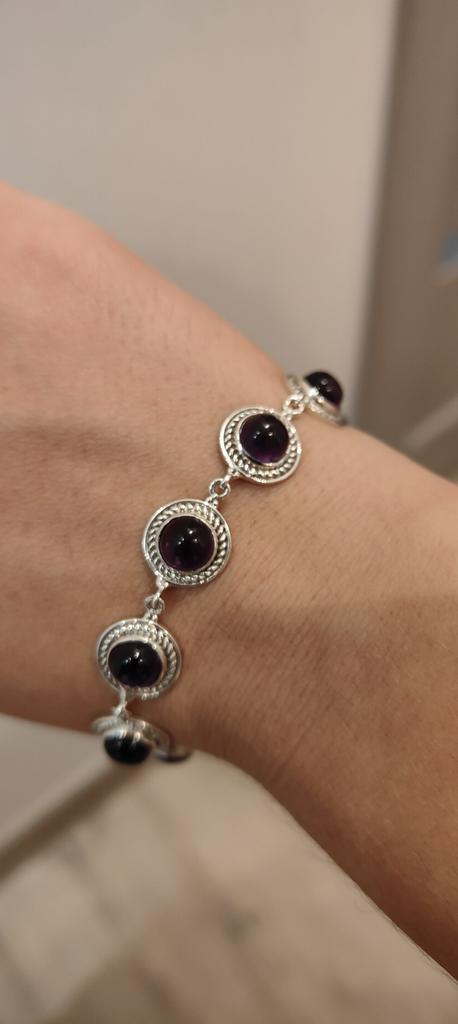 Браслет ручной работы из твердого серебра 925 пробы с аметистом и драгоценным камнем, ювелирные изделия из камня февраля