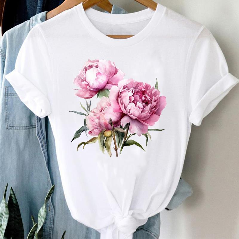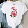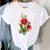 (Азиатский размер) Женская женская футболка с принтом, цветочный акварельный стиль, милая одежда 90-х годов, повседневная модная футболка с коротким рукавом, женские футболки с графикой