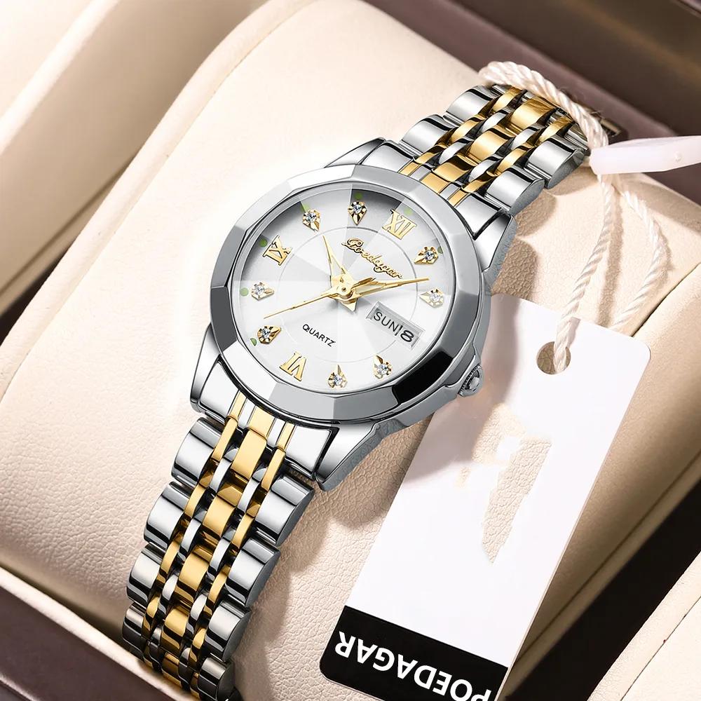 Роскошные Элегантные Женские Часы Высокого Качества Повседневные Светящиеся Водонепроницаемые Кварцевые Женские Часы Из Нержавеющей Стали Нарядные Часы с Датой Недели