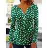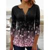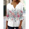 Весенне-летние топы, женская плиссированная футболка на пуговицах с v-образным вырезом и рукавами 3/4 с цветочным принтом